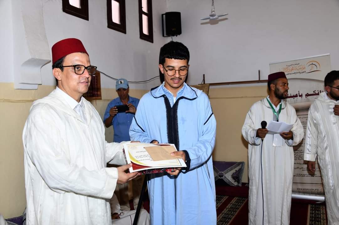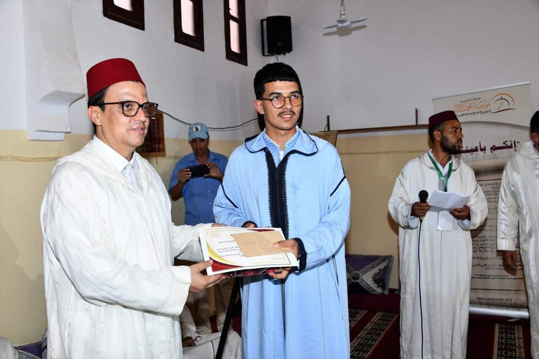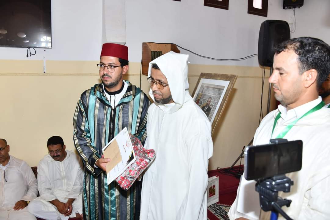 ترأس عامل إقليم الرحامنة عصر يومه الجمعة مراسيم توزيع الجوائز بمسجد مركز بوشان على بعض المكرمين من طلبة و أعضاء المجلس العلمي المحلي و ذلك بمناسبة إحياء موسم الطلبة ببوشان تحت شعار :” المدارس العتيقة و الكتاتيب القرآنية أساس المحافظة على ثوابت الأمة المغربية ”