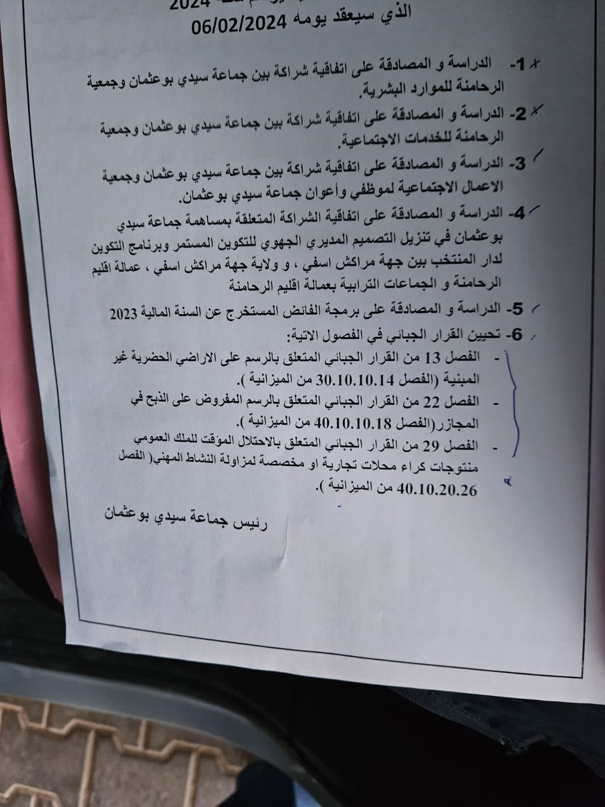مجلس جماعة سيدي بوعثمان يصادق بالإجماع على جدول أعمال دورة فبراير