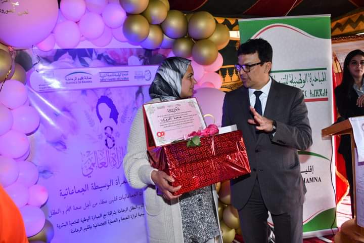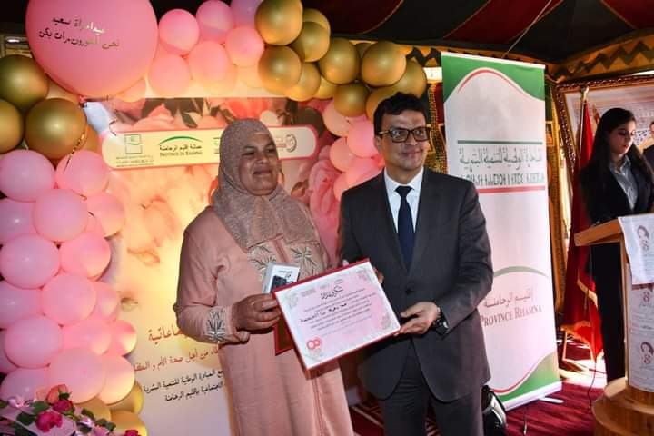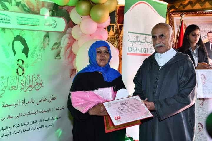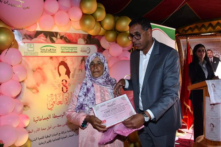 عامل اقليم الرحامنة يشارك النساء القرويات احتفالهن باليوم العالمي لحقوق المرأة و الذي يصادف 08 مارس من كل سنة بمركز دار الامومة بصخور الرحامنة المقام من طرف جمعية رعاية للصحة الام والطفل بشراكة مع المبادرة الوطنية للتنمية البشرية و وزارة الصحة و الحماية الاجتماعية لفائدة الوسيطات الجماعاتيات ، اللاتي كان لهن دورا اساسي و فعال خلال الفترة التجريبية لمنظومة الوسطاء الجماعاتيات في تسهيل الولوجيات للنساء القرويات خاصة الحوامل منهن للمرافق الصحيةو ذلك بتعزيز العرض الصحي فيما يخص صحة الام و الطفل باقليم الرحامنة و الحد من وفيات الامهات و الرضع بكل المستلزمات ووسائل الدعامة الاساسية.
