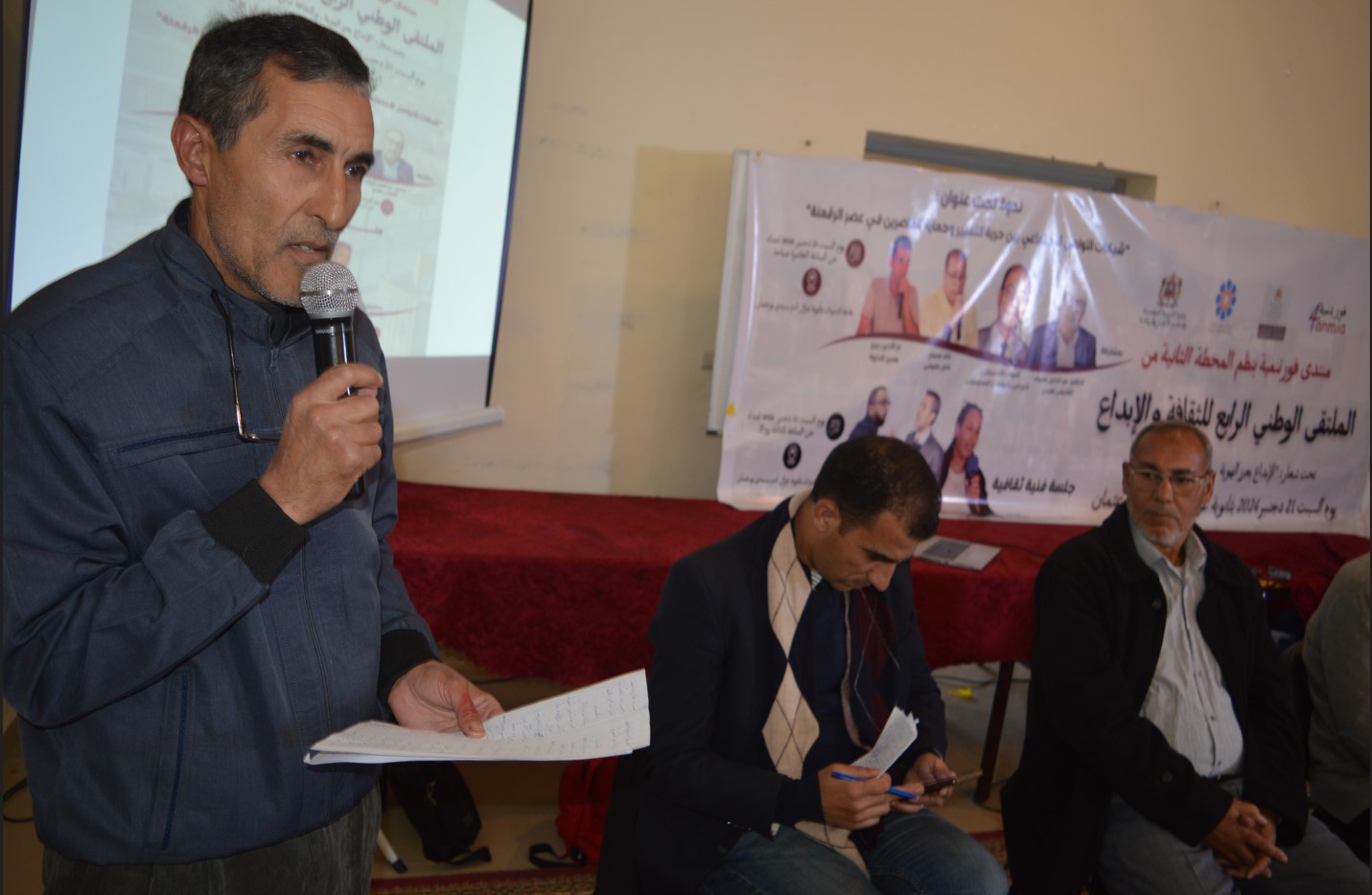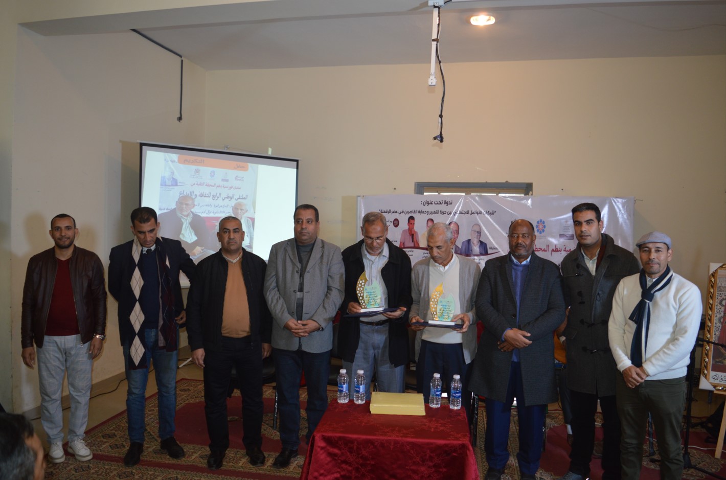 في فترة ما بعد الزوال، شهد الملتقى جلسة فنية ثقافية احتفاءً بالإبداع المغربي الأصيل. قدمت الزجالة مليكة فتح الإسلام والزجال عبد الباسط برامي باقة من القصائد الزجلية والشعرية التي لاقت تفاعلًا كبيرًا من الجمهور، فيما أتحف الفنان سفيان المساعدي الحاضرين بوصلة موسيقية للأغاني الخالدة لمرسيل خليفة وقعبور والشيخ إمام أضفت أجواءً من المتعة والإبداع على الفعاليات. كما تم في ختام الأمسية تكريم عدد من نساء ورجال التعليم بالمنطقة، اعترافًا بجهودهم في خدمة القيم الثقافية والتربوية ودورهم في بناء أجيال المستقبل.