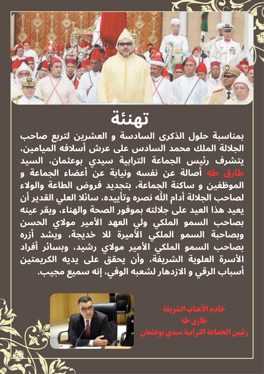 رئيس جماعة سيدي بوعثمان يهنئ بمناسبة عيد العرش المجيد أخبار الجماعات المحلية بواسطة هيئة التحرير في 30 يوليو, 2025 0 شارك 0 شارك FacebookTwitterGoogle+ReddItWhatsAppPinterestالبريد الإلكتروني