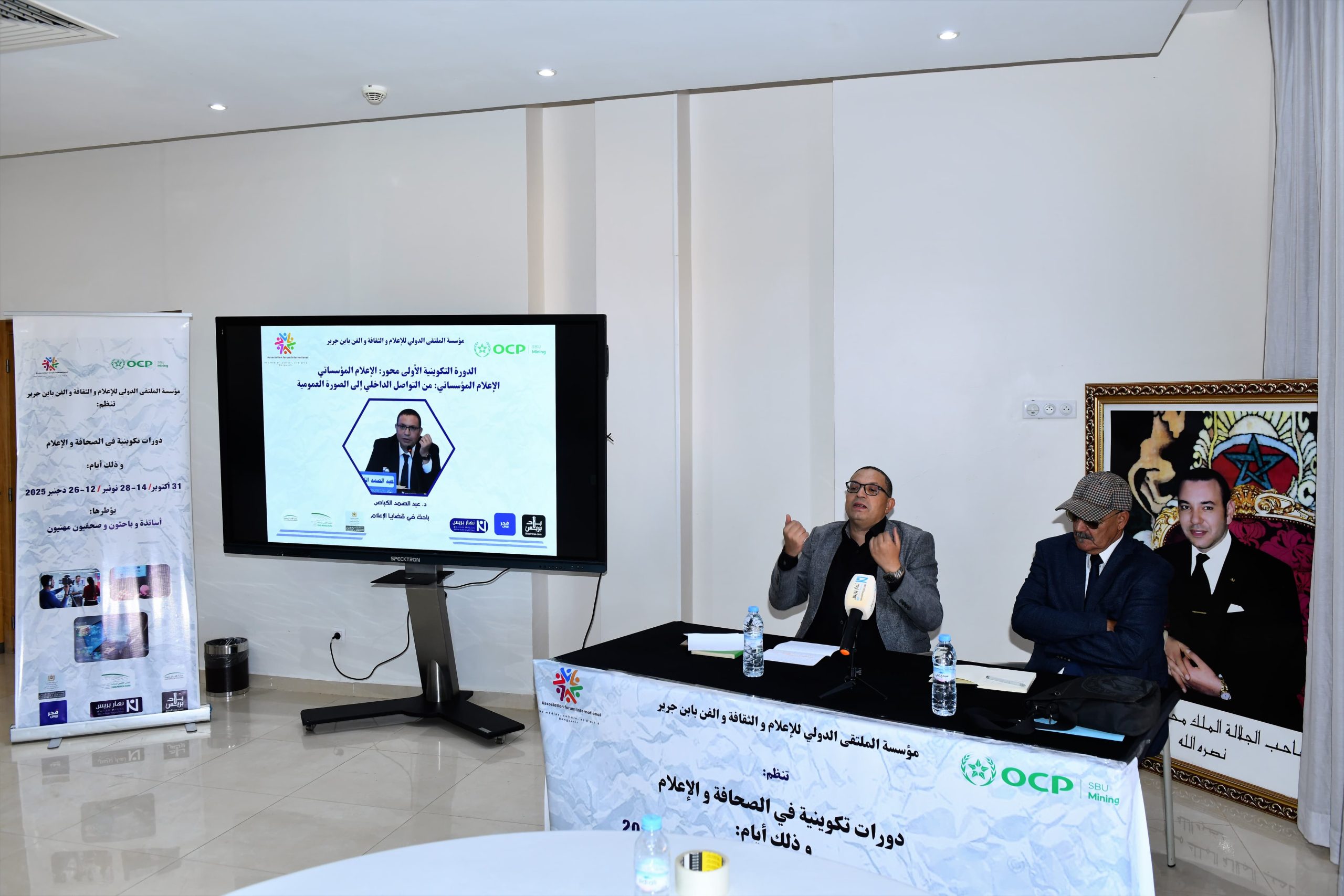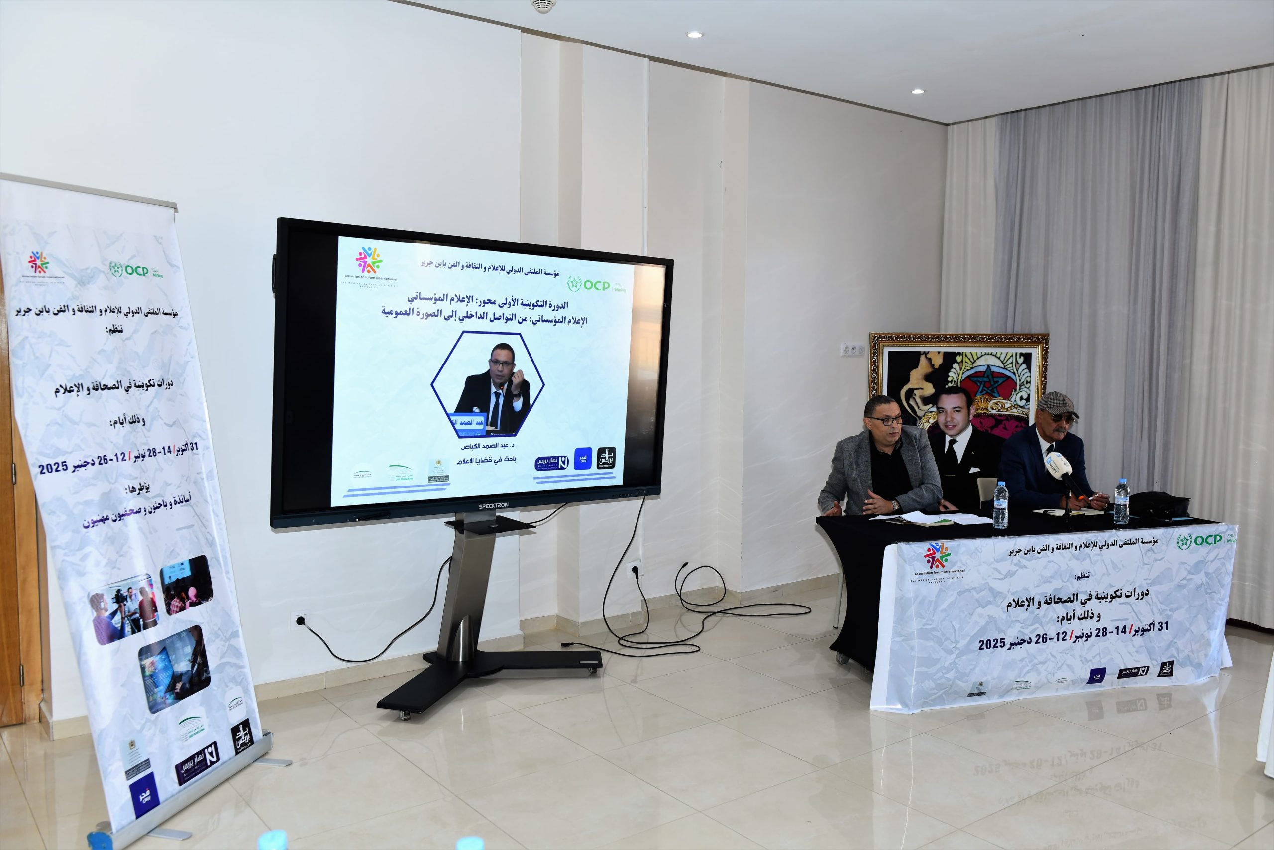 نظمت مؤسسة الملتقى الدولي للإعلام والثقافة والفن بابن جرير بشراكة مع المجمع الشريف للفوسفاط، دورة تكوينية حول موضوع “الإعلام المؤسساتي من التواصل الداخلي إلى الصورة العمومية”، أطرها الباحث في قضايا الإعلام الدكتور عبد الصمد الكباص، وذلك في إطار سلسلة من الدورات التكوينية التي تعتزم المؤسسة تنظيمها بشكل منتظم، بحضور أساتذة وباحثين وصحفيين مهنيين.